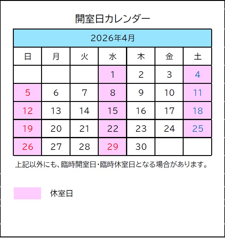 令和8年4月・5月の開室日